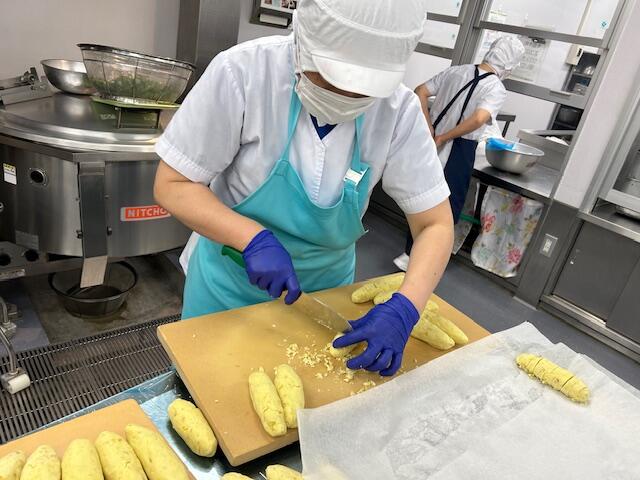 給食が始まったばかりの1年生には、給食室で中身をはさんだものを提供しましたが、2年生以上は、自分で工夫してはさんでいました。