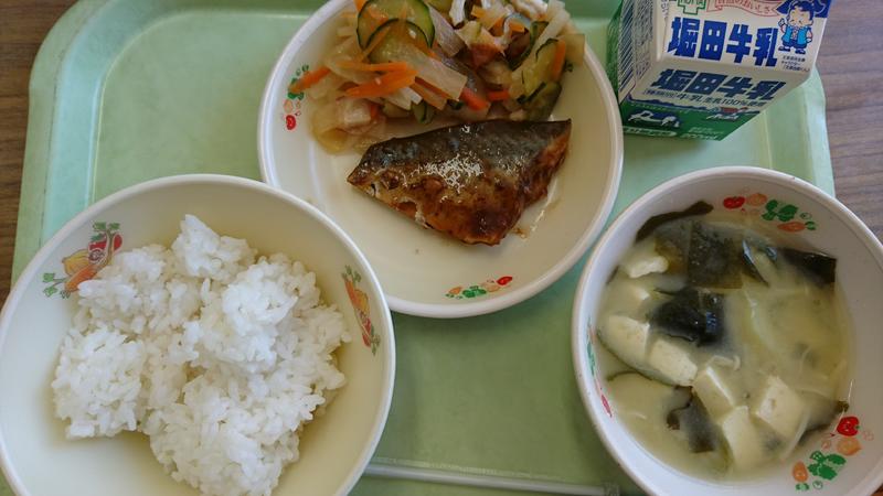 今日の献立は、ごはん、さばのソース煮、でこぽん酢和え、みそ汁でした。さばは、ソース、しょうが、砂糖、酒、水で煮付けにしました。子どもたちはソース味がお気に入りなようで「おいしい。」とパクパク食べてくれました。でこぽん酢和えのドレッシングは、でこぽんジュースと味ぽんを同量まぜて、オリーブオイルを少々加えました。でこぽんではなくオレンジジュースでも代替できます。お家でもお試しください。サラダのドレッシングとしていろんな野菜に合います。