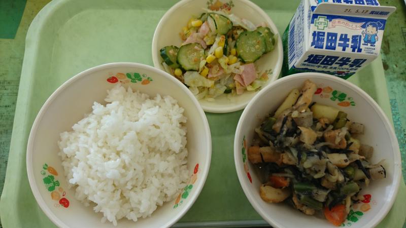 今週来週のテーマは運動会応援食。運動に必要な栄養を含む食材を毎日取り入れています。今日のピックアップ食材は「ひじき」、カルシウム、マグネシウム、鉄分などのミネラルをたっぷり含み、集中力アップと貧血予防に効果があります。練習も本格的になってきますので、朝食もしっかりとって登校できるようによろしくお願いします。