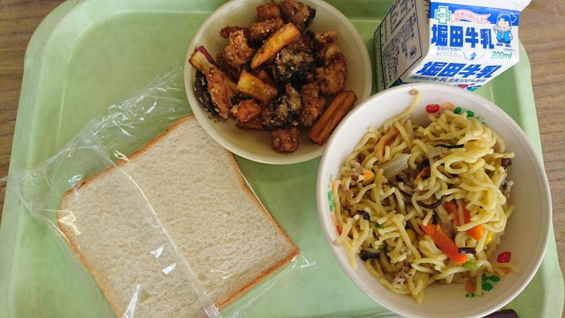 今日の献立は、食パン、焼きラーメン、肝っ子竜ちゃんでした。今日のピックアップ食材は鉄の王様レバーです。貧血予防→疲れ知らずで運動会の練習を頑張って!と思いましたが、、、苦手な子どもたちが多く、、一年生の子どもたちにもいまいち不評でした。でも苦労しながらも頑張って食べる姿が見られました(^o^;)