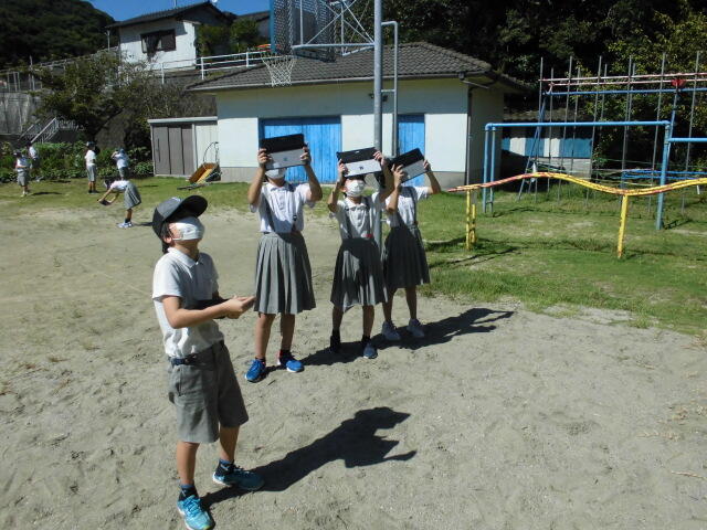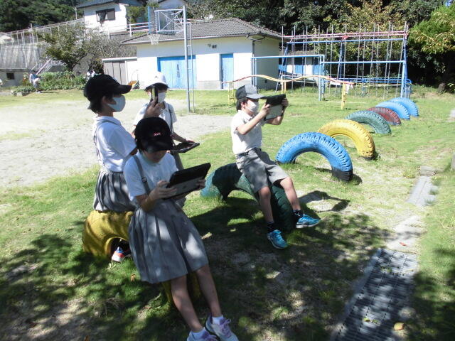 いろいろな教科でタブレットを使います。4年生の理科の授業では、生き物の様子を写真に収めました。