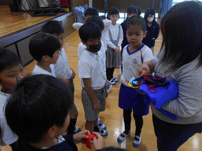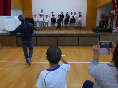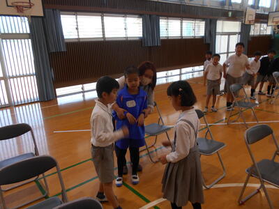 交流では、じゃんけん迷路、フルーツバスケット等で楽しみ、最後は、3年生から歌のプレゼント「ともだちになるために」がありました。さすが3年生、郡市音楽会に向けて練習していた成果が出て、気持ちが伝わったように思います。3年生の優しさが伝わりました。とうやくんも一番大喜びでした。