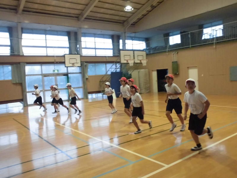 5年生は、体力テストの種目の一つ「シャトルラン」を実施しました。じめじめした空気の中でしたが、体育館を何往復も走り、自分の限界に挑戦しました。