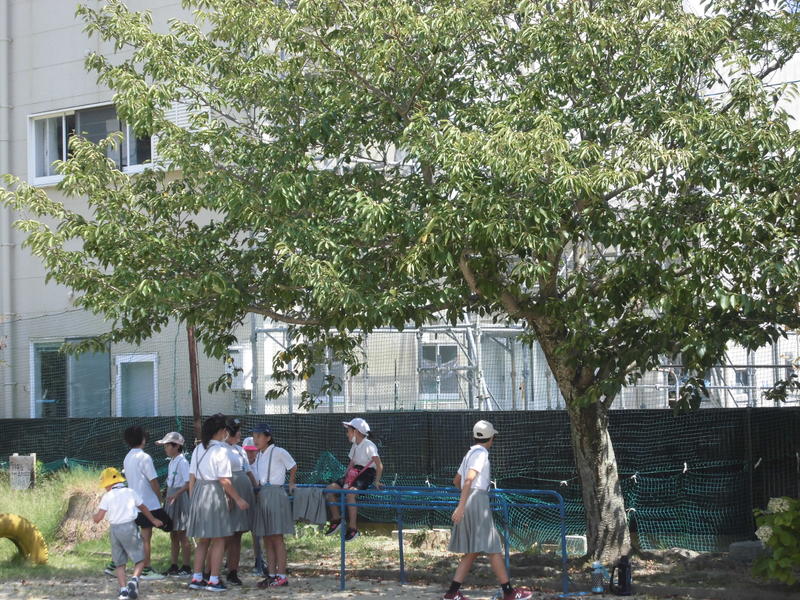 今日は、直射日光を避けるために木陰で遊んだり、こまめに水分をとったりして体を休めながら過ごしていました。コロナ対策に熱中症対策・・・。こどもたちに、自分の健康を管理する力と状況に応じて判断する力が身についているのを感じました。