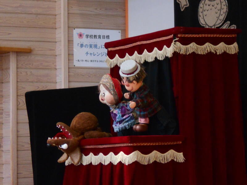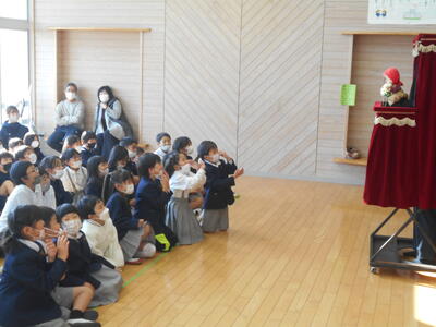 「ダメー」「気をつけて~」「それ、オオカミだよ~」と、身を乗り出して声を発する1年生。まるで、自分たちがお話の中にいるような感じで、「あかずきんちゃん」の世界に入り込んだようでした。
