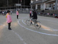 今年度2回目の自転車教室に3~6年生が参加しました。今回は、龍ヶ岳婦人会の主催で、駐在所や交通指導員のみなさんにも参加していただき、30名の方々から道路での正しい自転車の乗り方について教えていただきました。普段あまり自転車に乗ることがない子もいるようですが、繰り返すうちに上手に乗れるようになってきました。これからも、地域の方々に見守られていることに感謝し、安全に自転車に乗ってほしいと思います。