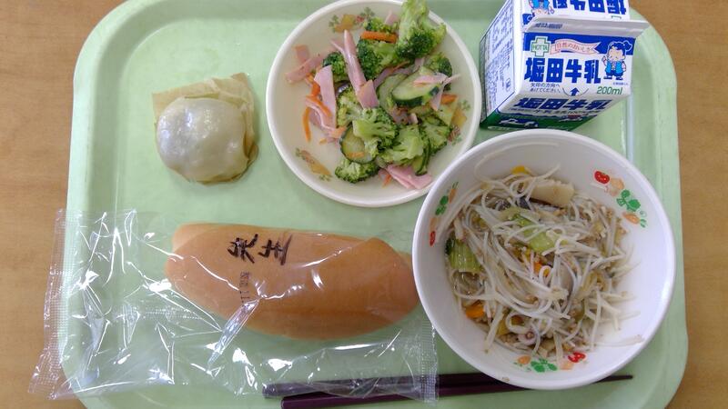 今日の献立は、コッペパン、肉みそビーフン、ブロッコリサラダ、いきなりだんごでした。今月の郷土料理「いきなりだんご」は給食室の手作りで、子どもたちに大人気です。薄力粉と白玉粉をそれぞれこねたあとに合体させてしばらくねかせます。輪切りにしたさつまいもとこしあんを中に包んで蒸して完成です。「また食べたいです!」とリクエストをたくさんもらいました。
