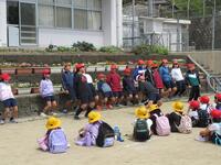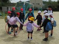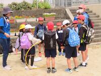 今回は縦割り班活動が中心となります。最初に縦割り班の班員を知るために、自己紹介+輪くぐりのレクレーションを行いました。