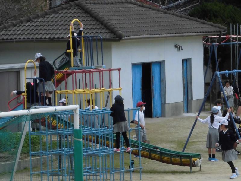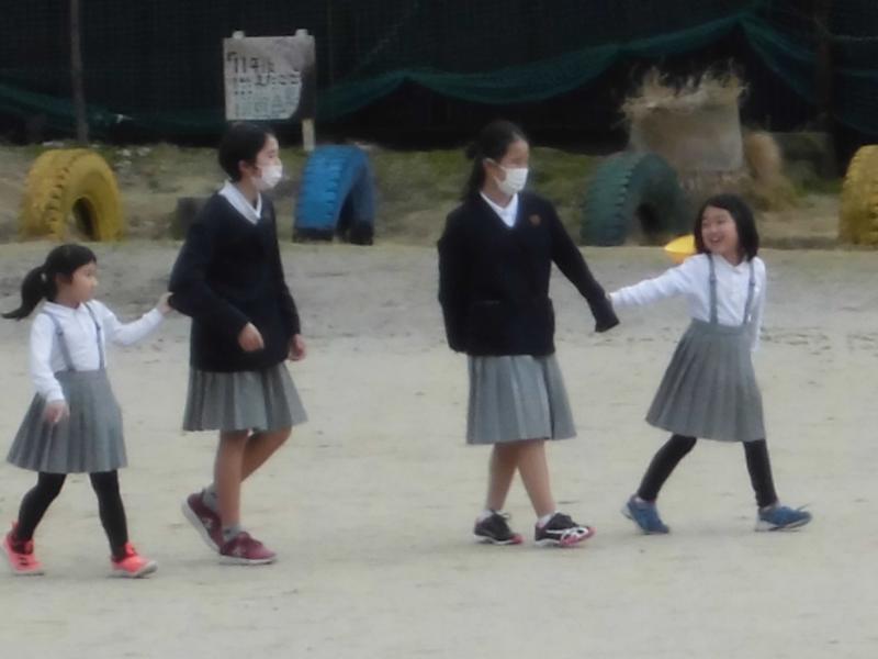 昼休みの子どもたちの様子です。外遊びに最高の気温になりました。それにしてもみんな仲がいいですね。
