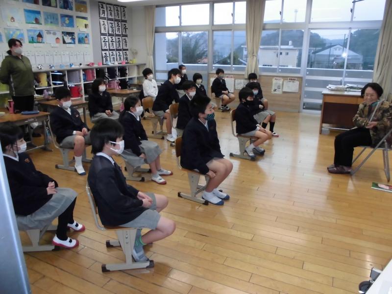 今日は先生達の技についても紹介します。龍小にはいろいろな特技を持った職員がいます!3年生と5年生の音楽の授業(鑑賞)の様子です。CDで聞くのではなく、本物の楽器の生演奏にみんな聴き惚れていました。