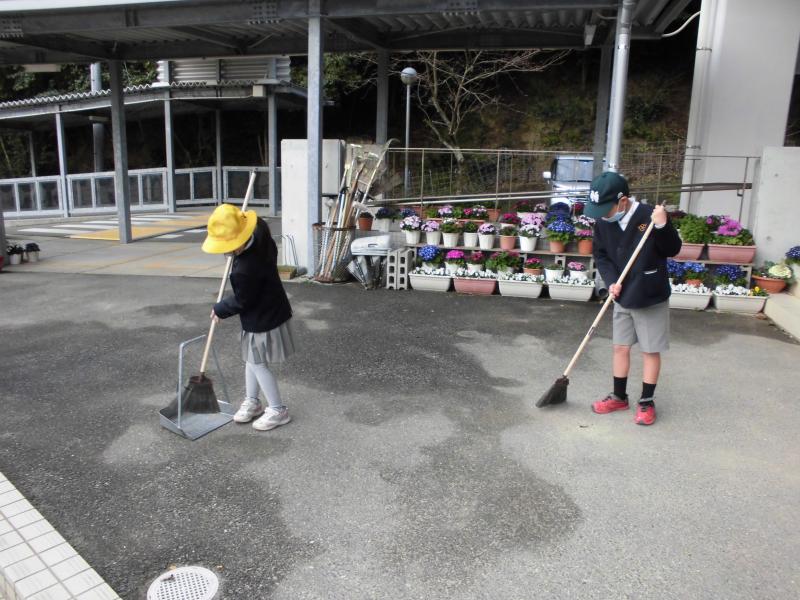 龍ヶ岳小の校舎は、築9年になります。今でもとても美しいです。子どもたちは朝からボランティアに励んでいます。掃除時間も一生懸命、ごみを掃いたり、床をぴかぴかにふきあげています。花や植物にも愛情を注ぎ、大切に育てています。