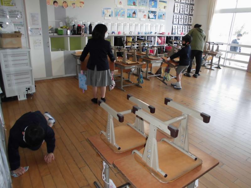 ひまわり学級は教室の片付けです!きれいにして4月を迎えましょう。