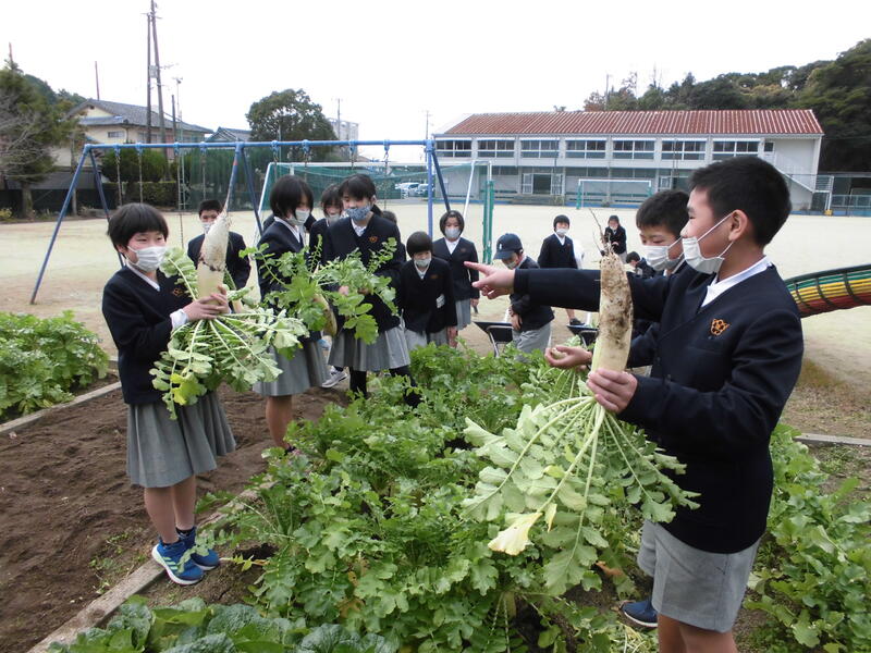 今日は3年生が大根の収穫をしました。子どもたちの太ももより太い大根もあり、みんな大騒ぎでした。