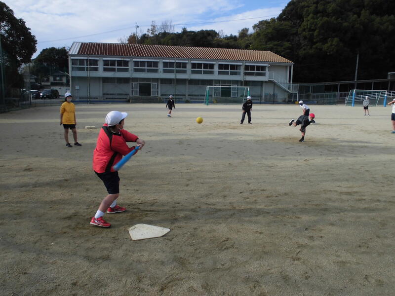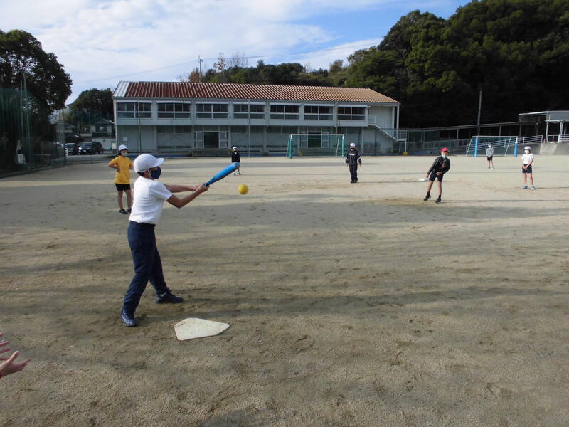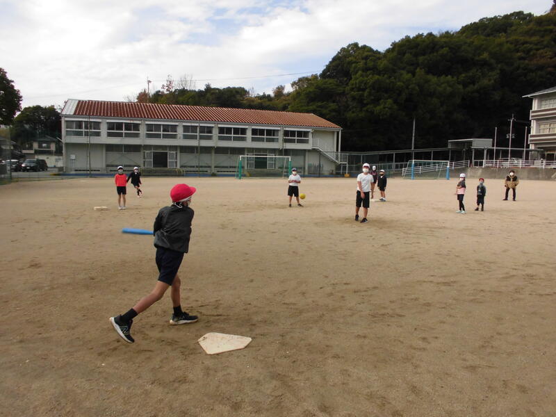 4年生の「野球の試合」の様子です。なかなかのバッティング!これからはボールをとったり投げたりする練習もがんばりましょう!