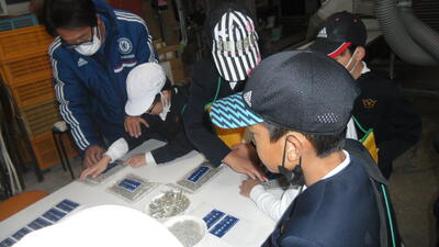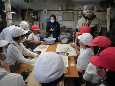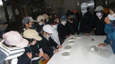 ちりめんがどのように作られているのか、工場の中を見たり、質問をしたりしました。袋にシールを貼る作業もしました。地域でとれた魚を使って、おいしいちりめんができていることに気づくことができました。