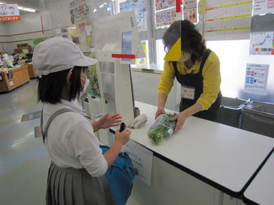 その後、三角港内でお弁当を食べ、さんぱーるで見学と買い物をしました。お家へのおみやげとして、200円で買える物を探しました。野菜や果物、手作りのお菓子等、地域でできたものや作られたものを買うことができました。お家の方も喜んでくださると思います。