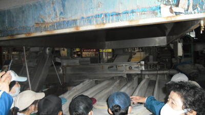 まず、山下竹輪屋へ見学にいきました。作業場を見たり、実際に作業の体験をしたりしました。地域の魚を使って加工されていることも分かりました。