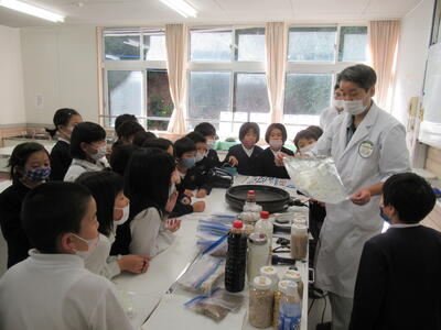 子ども達は国語で「すがたをかえる大豆」を学習して、大豆がいろいろな食品に変身していることを学んでいます。
