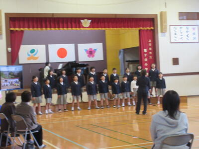 今日、業間の時間に、17日に天草郡市音楽会に出場する4年生の合唱をみんなで鑑賞しました。いつも元気いっぱいの4年生ですが、今日は朝からとても緊張していたということでした。今、本番に向かって、音楽の時間や昼休み等で一生懸命練習しているところです。