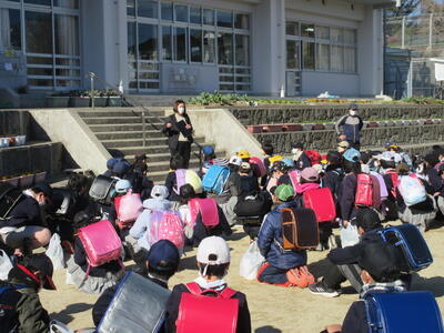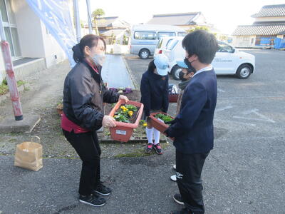 龍ヶ岳小学校では、1月31日から、人権旬間です。スタートの日に、これまで育ててきた人権の花を、いつもお世話になっている地域の方や、様々な施設へ贈る活動をしました。