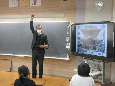 熊本県教育庁教育総務局文化課から来ていただき、2回目は2月1日に5年生へ、今回は3年生へ話をしていただきました。
