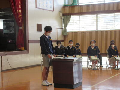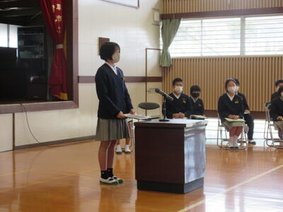 その後、質問や意見、感想の交流がありました。「~の活動は、来年はどのようにしていけばいいですか。」という高学年からの質問があったり、「~を毎日してくださってありがとうございました。」「~が楽しかったので、また来年もしてください。」等の感謝の言葉が低学年から出たりしていました。4~6年生の活動の思いが、1~3年生にも伝わっていたことが分かりました。