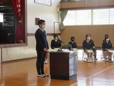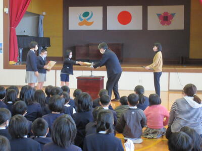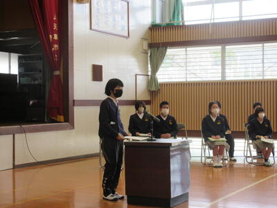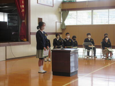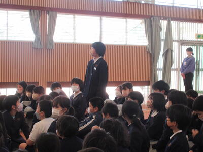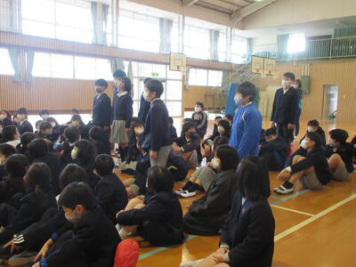 まず、各委員長から今年度の活動で頑張ったことや、反省点、来年度につなげたいこと等の発表がありました。どの委員会もよりよい龍ヶ岳小になるように、日々の常時活動を責任ももって続けたことや、みんなが楽しめるような企画を実行したりと充実した活動ができていたようでした。また、まだやり遂げていない部分は、最後まで取り組んでいきたいということも伝えていました。