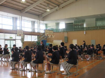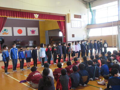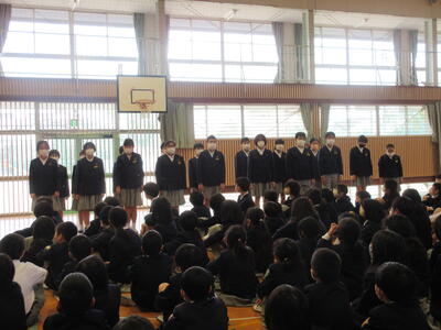 練習の後、1~4年生からの感想発表がありました。「5,6年生の姿勢がよくてかっこよかった。」「歌がとても上手だった。」「自分たちも、あの6年生みたいになりたい。」「これから自分たちも龍ヶ岳小のために頑張っていきたい。」等、思ったことを素直に出してくれました。これまで、6年生が龍ヶ岳小全体のことを考えて行動してきてくれたことが伝わっているのだと感じました。