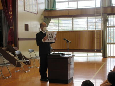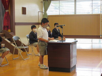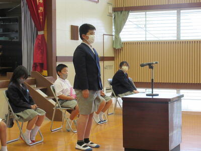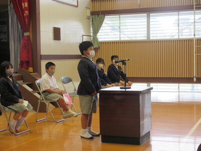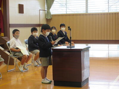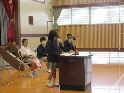 今日は修了式でした。龍ヶ岳小の子どもたち、この1年間よく頑張りました。まず最初に1年間を振り返っての発表がありました。