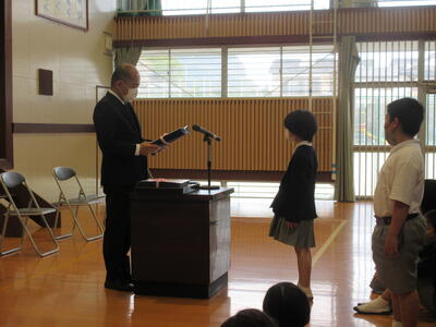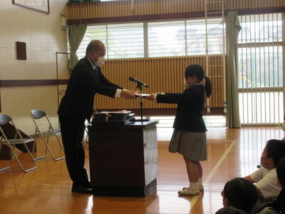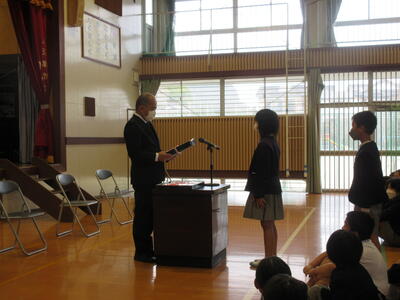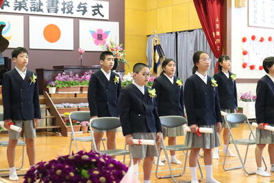 次に、修了証の授与がありました。各学級の代表が受け取りました。