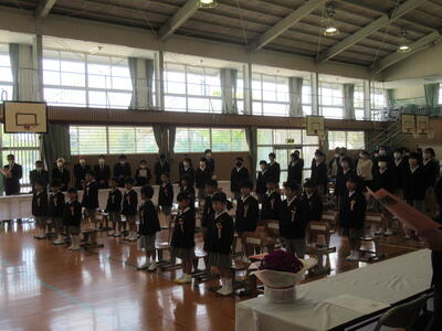 就任式では、9名の先生方を迎えました。子どもたちも新しい先生方の話をしっかり聞くことができていました。