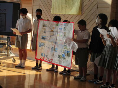 下級生にもよく分かる内容でした。また、「校内ハザードマップ」を作成し、見せてくれました。これは児童昇降口に貼ってありますので、