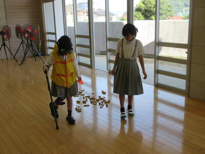 校内の危険な場所を写真を見せながら、説明してくれました。廊下を歩くこと、階段の下り方、体育館の工事現場の近くのこと・・・等、