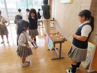 おもちゃやさんが開店すると、1年生は大喜び!それぞれのお店を満喫し、お土産ももらい大満足でした。また、2年生も立派なお兄さん、お姉さんとして、1年生のに優しく声をかけながら、楽しませていました。