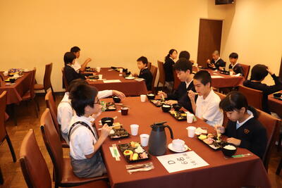 その後、三角港でのお弁当。みんなおいしくいただきました。