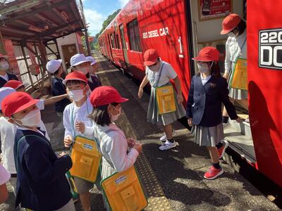 次に三角駅から波多浦駅まで電車に乗りました。切符も自分たちで買いました。短い時間でしたが、窓からの景色も楽しむことができました。