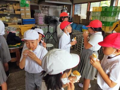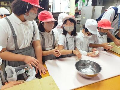 最初は、山下竹輪屋に行きました。竹輪の作り方を教えていただいたり、機械を見せていただいたりしました。また、魚ロッケを自分たちで作り、食べました。地域の素材を使って竹輪やてんぷらを作ってらっしゃること等を学びました。