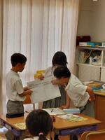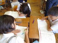 国語では、説明文を学習しました。まず、説明文に提示されている事例が必要か考えました。子どもたちは、グループで考えを深め合いました。その後さらに、説明文にない事例を追加してよいか考えました。説明文とともに掲載されている図に手を加えたものを提示すると、子どもたちは意欲満々に考え始めました。これからも発問などを工夫しながら、グループでの学び合いの経験を重ねていきたいと思います。
