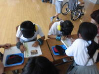 3年生では、たし算とひき算の学習で「暗算バトル」を行いました。まず、計算の方法を図で表して説明し合います。次に子ども同士で問題を出し合ってバトルをします。もし相手が間違った場合はやさしく説明します。子ども達は楽しく意欲的に学習を進めていました。