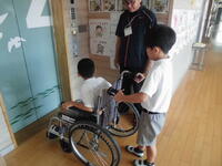 4年生が高齢者疑似体験を行いました。車椅子を使う人の介助や、体の重さ、聞こえづらさや見えづらさを体感する装具をつけて歩いたり、文字を読んだり、財布からお金を出し入れしたりしました。普段自分たちが当たり前のようにしていることが思うようにできないことや不安があることに気づくことができました。社会福祉協議会の方々などにご協力いただきました。ありがとうございました。