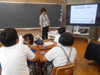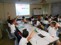 また、講師の先生をお招きし、くまもとの水環境についての環境学習を行いました。子どもたちは、熊本の水の豊かさ、熊本と天草の水環境の違いなど興味津々に学んでいました。