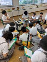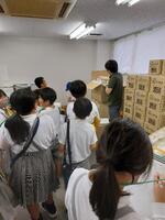 龍ヶ岳町支所には、災害に備え、食料や飲料水、生活用品などが備蓄されています。4年生が見学に行きました。「このご飯はそのままたべられるのですが?」「期限切れの水や食品はどうするのですか?」「発電機は何台あるのですか?」などとたくさん質問をしていました。また、簡易トイレや成人用おむつもあり、子どもたちはびっくり。実際に見ることで新たな疑問が生まれ、さらに理解が深まっていました。