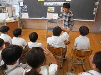 また、先生の話コーナーもありました。今回も子どもたちは、興味津々に聞いていました。話を聞いて共感したことをしてみてほしいなと思います。