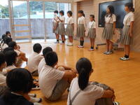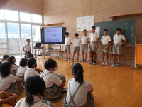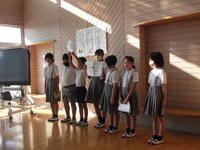 環境委員会が11月のボランティア月間で取り組む、朝活動での草取りについて説明しました。クラスごとにカードに記入し表彰も行います。環境委員会の発表の後、説明を聞いていた児童から「外に出て草取りをがんばりたい」という意見が出ていました。子どもたちの奮起を期待したいと思います。
