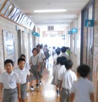 生活安全委員会が学校生活に関することについて発表しました。まず、正しいあいさつの仕方、気持ちのよいあいさつのポイントを説明し、全児童で練習しました。次に、委員会で作成した龍小版ハザードマップを使い、校内にあるけがをしやすい危険な場所を説明しました。最後に、校内を右側歩行してみました。安全な生活が送るためのいい体験になりました。