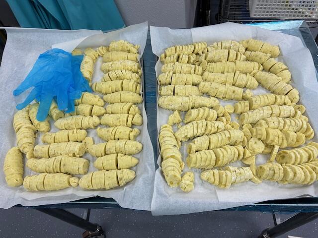 どのように作ったのかの写真を紹介し、子どもたちは「もちもちしておいしい♪」といって喜んで食べてくれました。