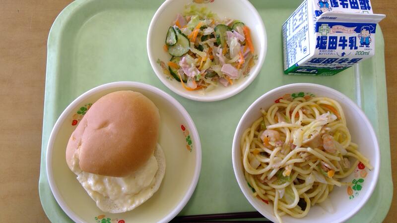 今日の献立は、手作りクリームパン、春キャベツスパゲティ、ツナサラダでした。手作りクリームパンは卵黄、牛乳に砂糖、米粉を加えて弱火でゆっくりと練り、仕上げにバターと生クリームを加えて完成です。甘さ控えめで先生方にも好評でした。旬のやわらかい春キャベツはスパゲティにも良く合います。今日も恒例の「にんにくオリーブ油」を仕上げにかけてペペロンチーノ風味になりました。