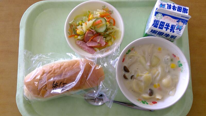 今日は昭和50年代のパンのメニューでした。あげパン、ビーフン、昔のドレッシングサラダです。平成10年を過ぎた頃から、上天草内の学校給食にいろいろな手作りパンが登場するようになりましたが、それまではあげパンが唯一の手作りパンで大人気メニューでした。サラダにはみかんやレーズンが入った野菜サラダがよく出されました。当時は今のようにごまドレや和風ドレなどの市販のドレッシングはなかったので、酢の物のような酸っぱい味のサラダが多かったようです。