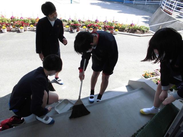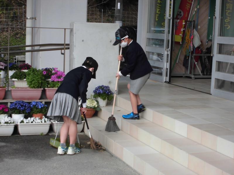 龍ヶ岳小の校舎は、築9年になります。今でもとても美しいです。子どもたちは朝からボランティアに励んでいます。掃除時間も一生懸命、ごみを掃いたり、床をぴかぴかにふきあげています。花や植物にも愛情を注ぎ、大切に育てています。