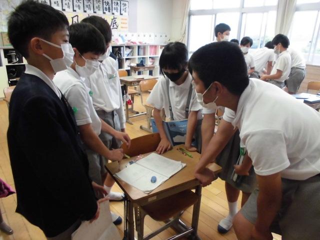 6年生です。算数の授業中です。内容が難しくなってきます。みんなで話し合いをし、教え合ったり、聞き合ったりして解決しています。